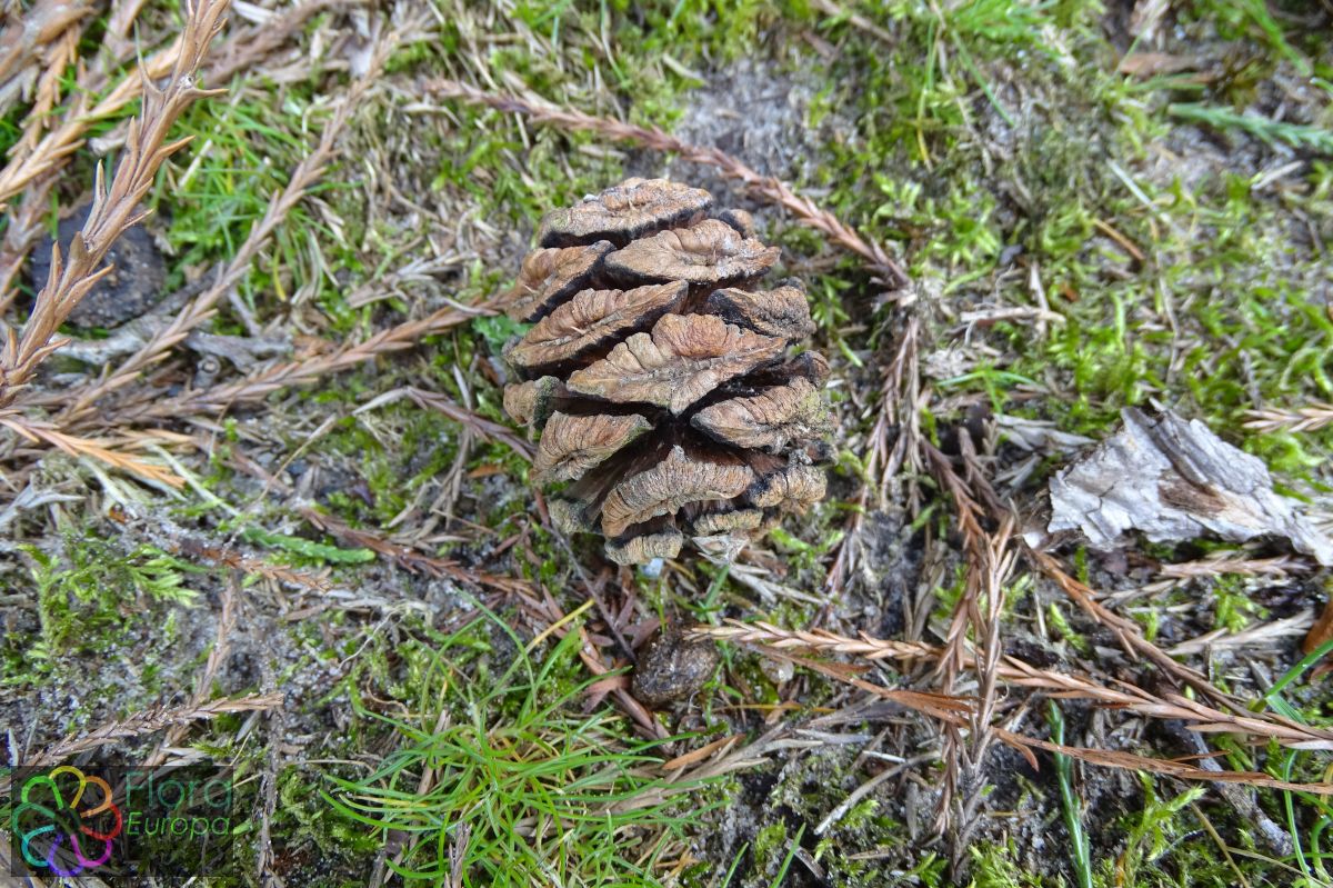 Kegels (ca. 6 cm) met 35-40 schubben, blijft twee jaar groen, daarna houtig, donker roodbruin.