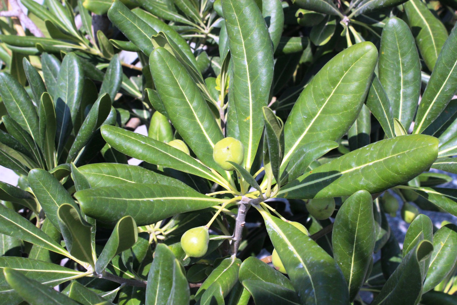 Kleine groenblijvende boom of struik. Bladeren glanzend donkergroen, omgekeerd eirond.